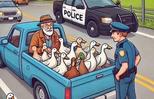 A policeman pulls over an old man driving a pickup truck with the bed overflowing with ducks. The officer says...