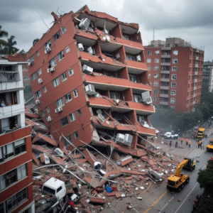 In Bogotá, chaos erupted as part of a high-rise apartment tower crumpled, its concrete frame groaning before slumping sideways into a neighboring building. The image was surreal—steel supports snapped like twigs, balconies sheared off, air conditioners dangling over sidewalks now littered with brick and dust.