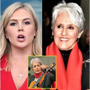The studio lights were soft and steady. Joan Baez, now in her eighties, sat in a simple black chair, her silver-white hair framing a face that still carries both peace and fire. Across from her sat Karoline Leavitt — thirty-something, sharp-spoken, a rising name in political media circles known for her quick wit and firm opinions.