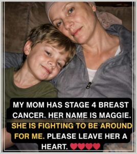 This photo captures a quiet moment between a mother and her child—a moment filled with tenderness, courage, and unspoken promises. Maggie is facing stage 4 breast cancer, but what you see here is not fear.